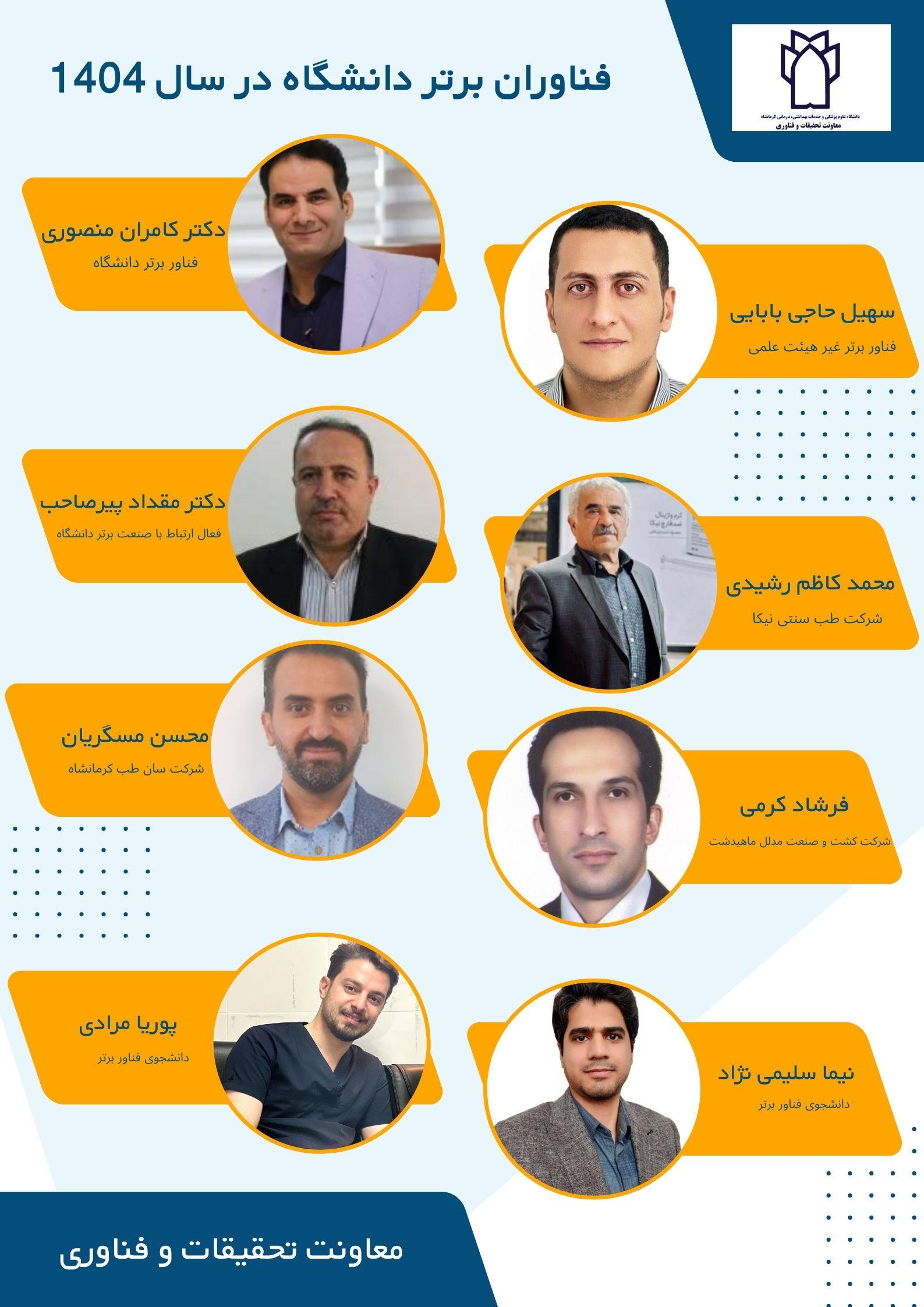 * فناور برتر دانشگاه: آقای دکتر کامران منصوری، مرکز تحقیقات بیولوژی پزشکی